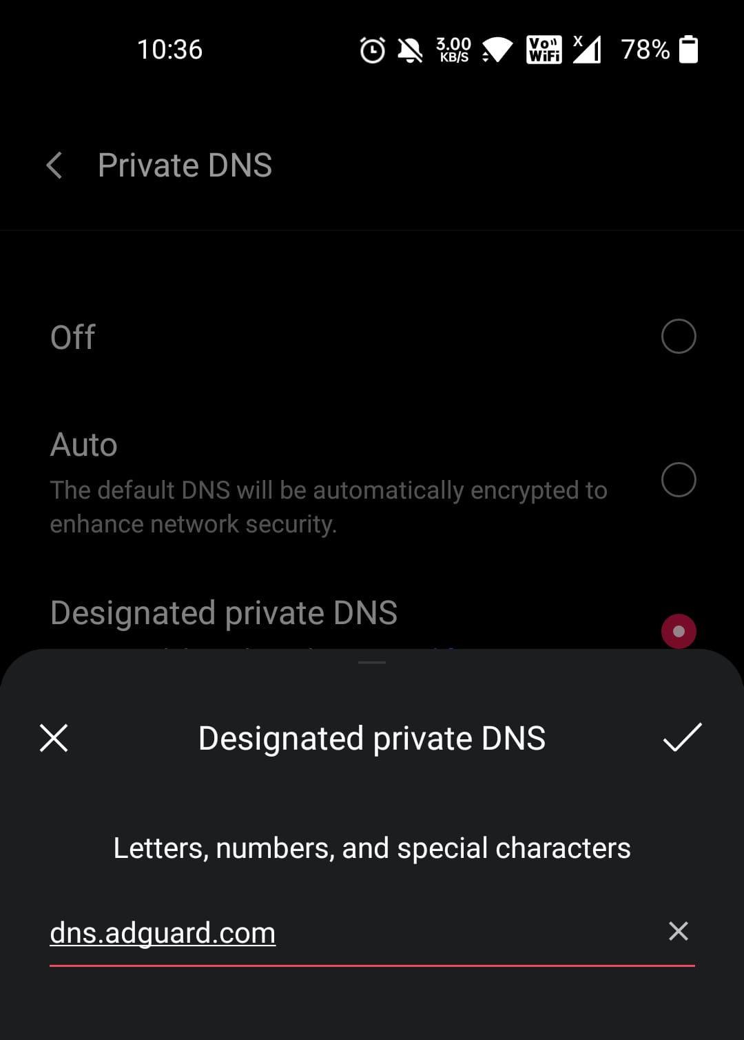 Sélectionnez Designated private DNS et entrez